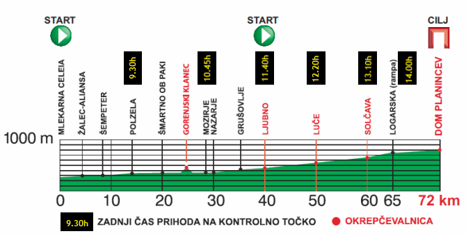 Za osvežitev udeležencev na Velikem maratonu bo poskrbljeno na štirih okrepčevalnicah: Gorenjski klanec, Ljubno, Luče in Solčava.