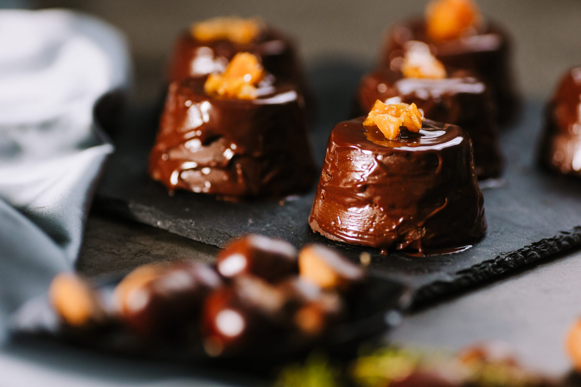Zmes nadevamo v silikonske modelčke za mafine. Pustimo v hladilniku čez noč, da se dobro strdijo.