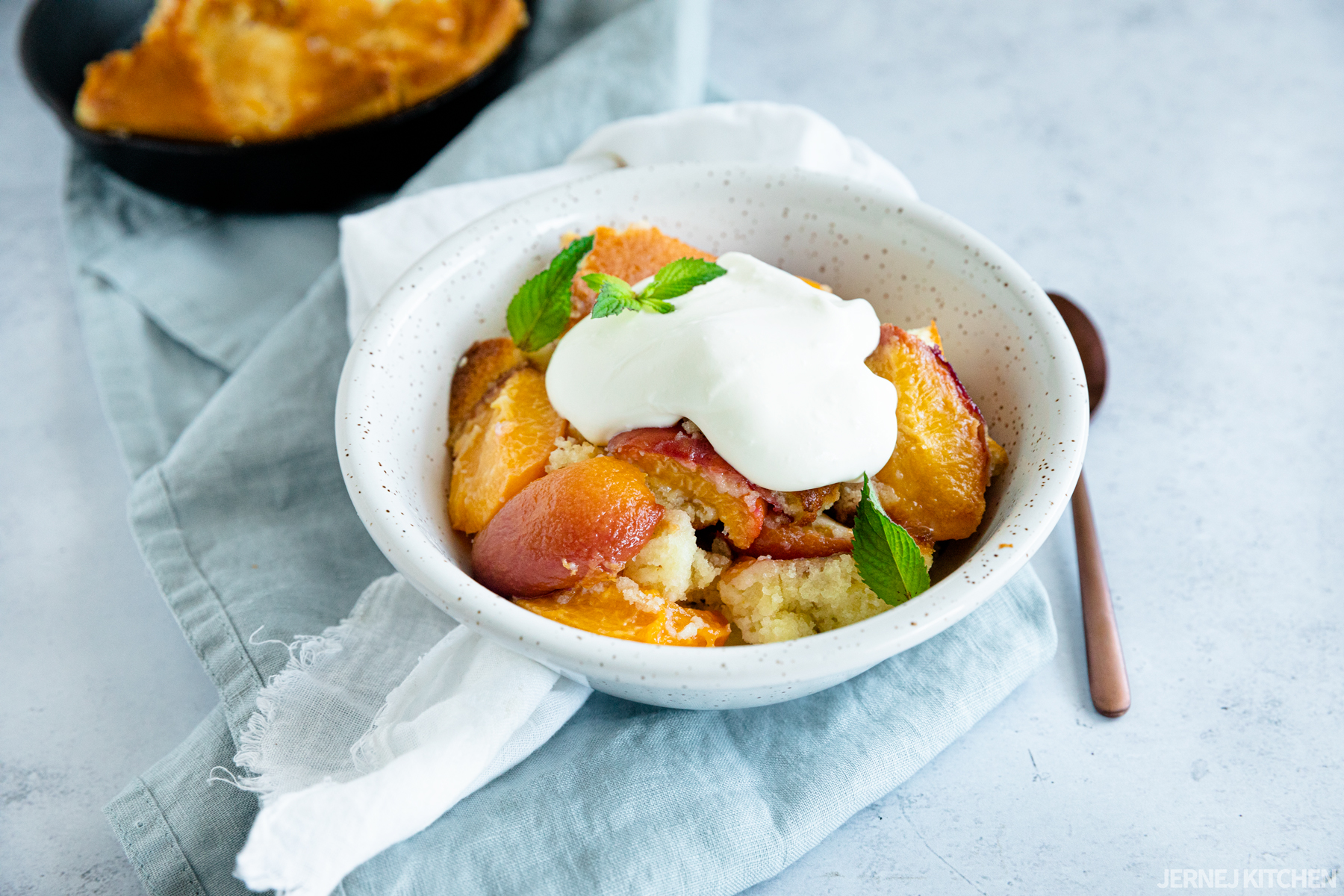 Preprosta priprava kolača, ki ne zahteva veliko truda. Njegova priprava vam ne bo vzela veliko časa. Kolaču se odlično podajo breskve. Uporabite sveže, lahko pa se odločite za vložene. Za piko na i kolač okrasite s stepeno smetano.
