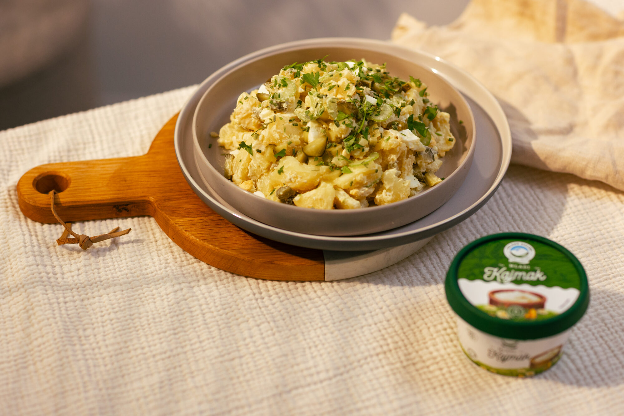 Krompirjeva solata s kajmakom Zelene Doline je odlična priloga za spomladanske piknike ali glavne jedi.