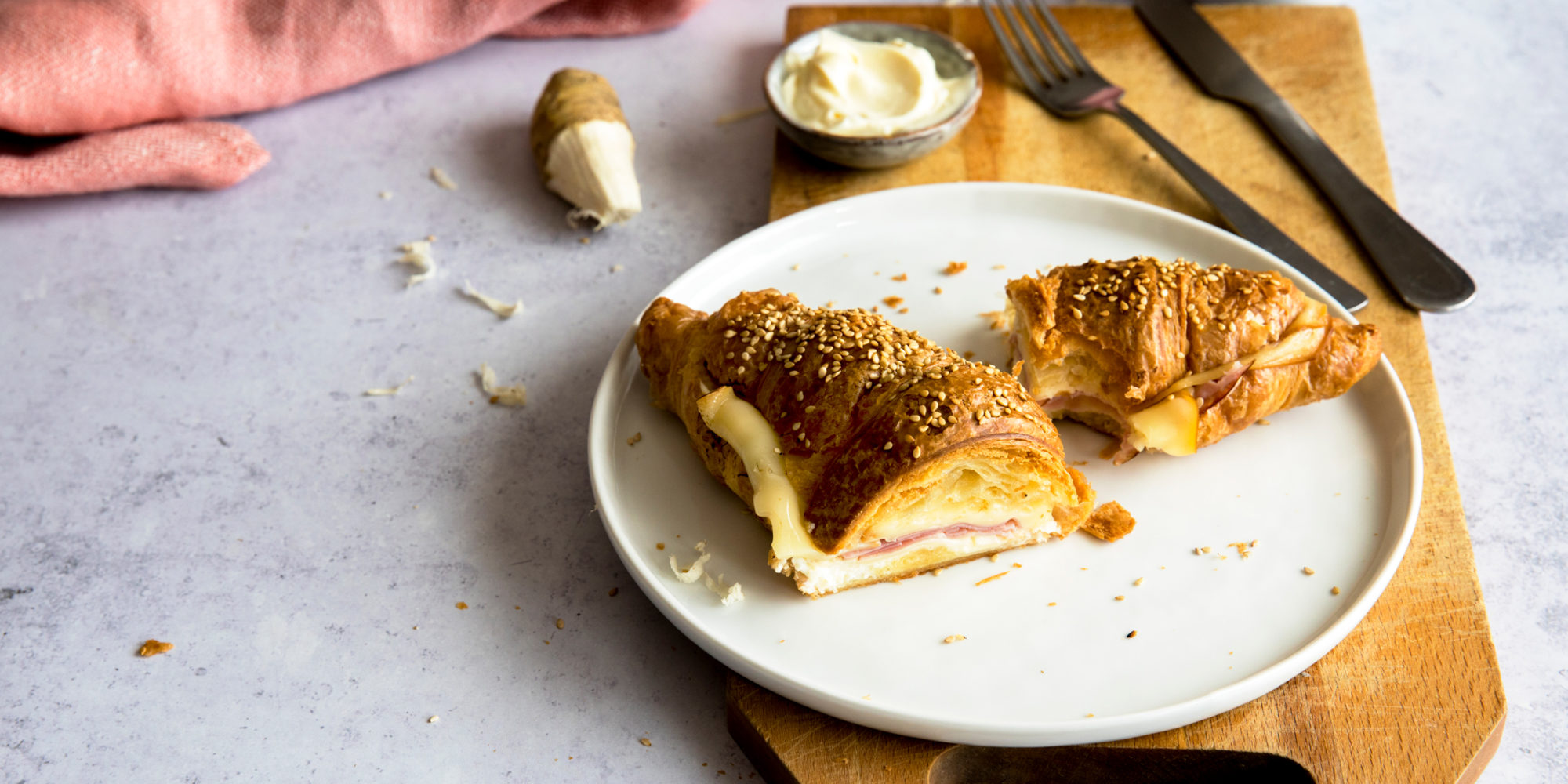 Masleni rogljički s šunkom in sirom