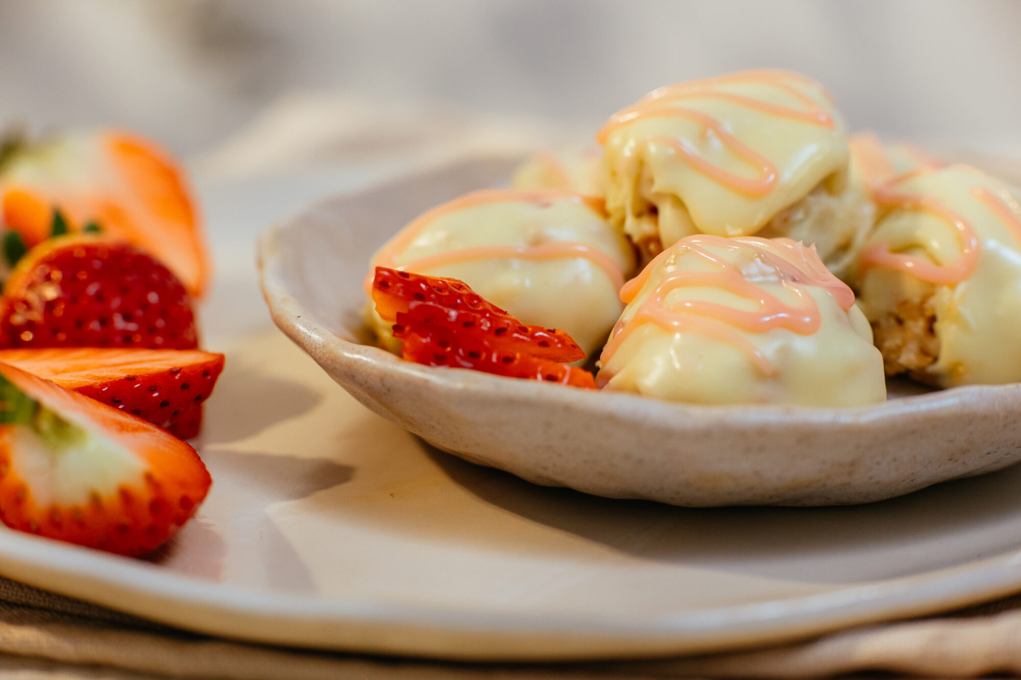 Narejene jagodne trufle položimo nazaj v hladilnik za 30 minut in postrežemo.